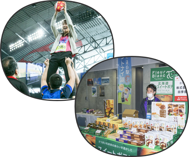 第2回目も札幌ドームで開催。前年同様の4競技や、北海道ゆかりのスポーツ・ウインタースポーツ・パラスポーツなどを体験できる「ふれ☆スポランド」も引き続き展開しました。また、前年に続き胆振東部地震の復興支援を掲げ、東胆振の特産品などを販売メニューととした「ほっかいどう応援☆マルシェ」を行い、参加料の半額などを義援金として被災地に贈りました。